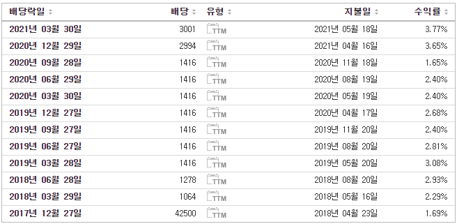삼성전자 배당금은 꾸준히 증가해왔고, 삼성전자 우선주는 삼성전자 배당금에 비해 주가가 싸기때문에 상대적으로 높은 수익율이 나타납니다.