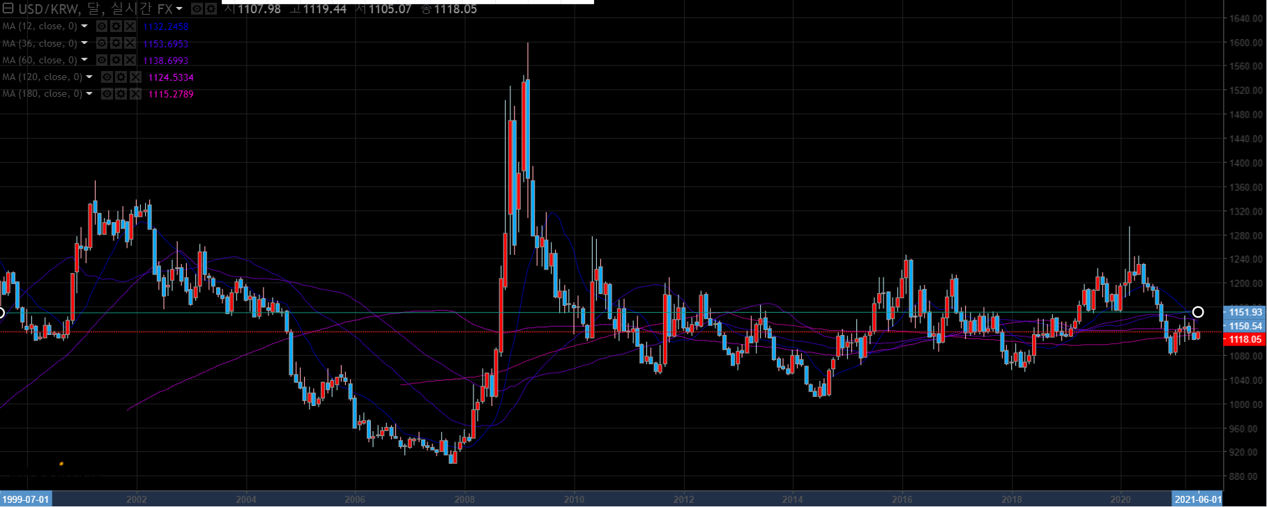 저의 경우 1년, 3년, 5년, 10년 15년 평균 가격을 기준으로 환전을 실시합니다.