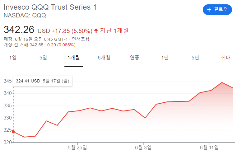 이러한 이유로 최근 한달간 qqq의 주가도 상승해왔습니다.