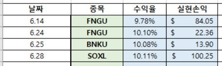 FNGU, SOXL, BNKU 3종목으로 시작했습니다.